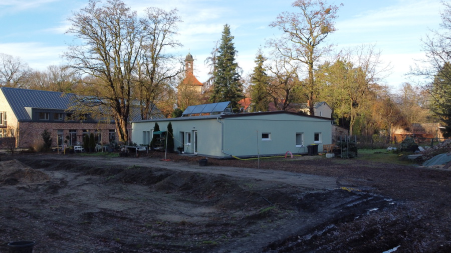Die Planungen zum Gebäude liefen eigentlich schon deutlich vor 2018. Der Bedarf bestand sogar noch länger. Nach der ersten, nicht realisierten Baugenehmigung (etwa 2018) des geplanten, beinahe autarken Gebäudes mit Gewächshaus, was nicht finanzierbar war, gingen wir die preiswerte Lösung dann erneut an. Die Planungen hierfür starteten etwa Mitte 2019. Die Baugenehmigung wurde im April 2020 vom Land Brandenburg erteilt.