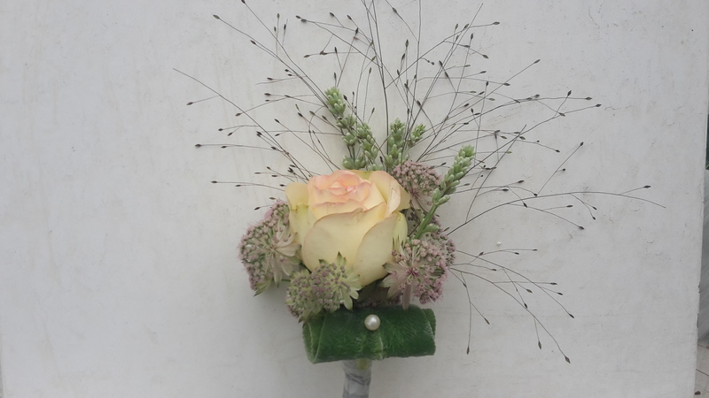 Auch der Bräutigam muß nicht auf einen Blumenschmuck verzichten. Anstecknadeln von unseren Floristinnen, die die Blume halten, lassen sich dekorativ ans Revers anstecken. Besonders schön ist, wenn die Blumen aus dem Brautstrauß im Anstecksträußchen für den Bräutigam wieder aufgegriffen werden.