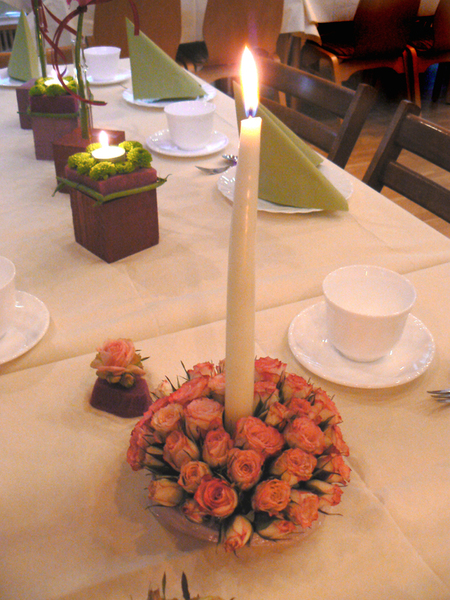 In der Kirche können im Gang an den Bänken kleine Blumensträuße mit Schleifenband angebracht werden. Eine Girlande über dem Eingang zur Kapelle, sowie ein Blumenschmuck an den Stühlen vom Hochzeitspaar ist auch sehr beliebt.