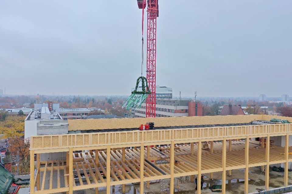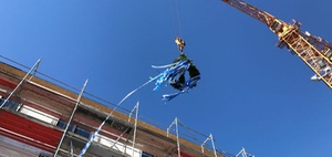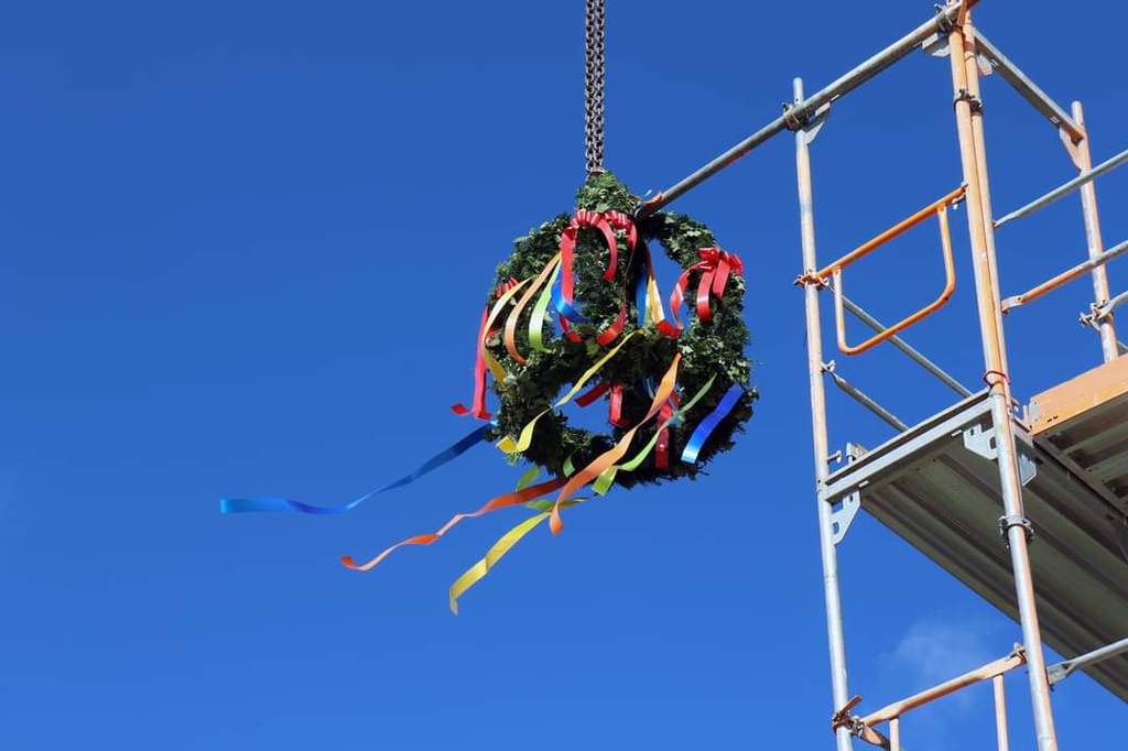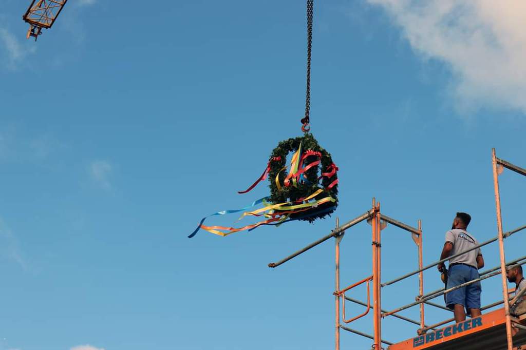 Auf Wunsch wird die Richtkrone bis zur Baustelle geliefert und dem Zimmermann übergeben, der diese in luftiger Höhe ins rechte Licht rückt.